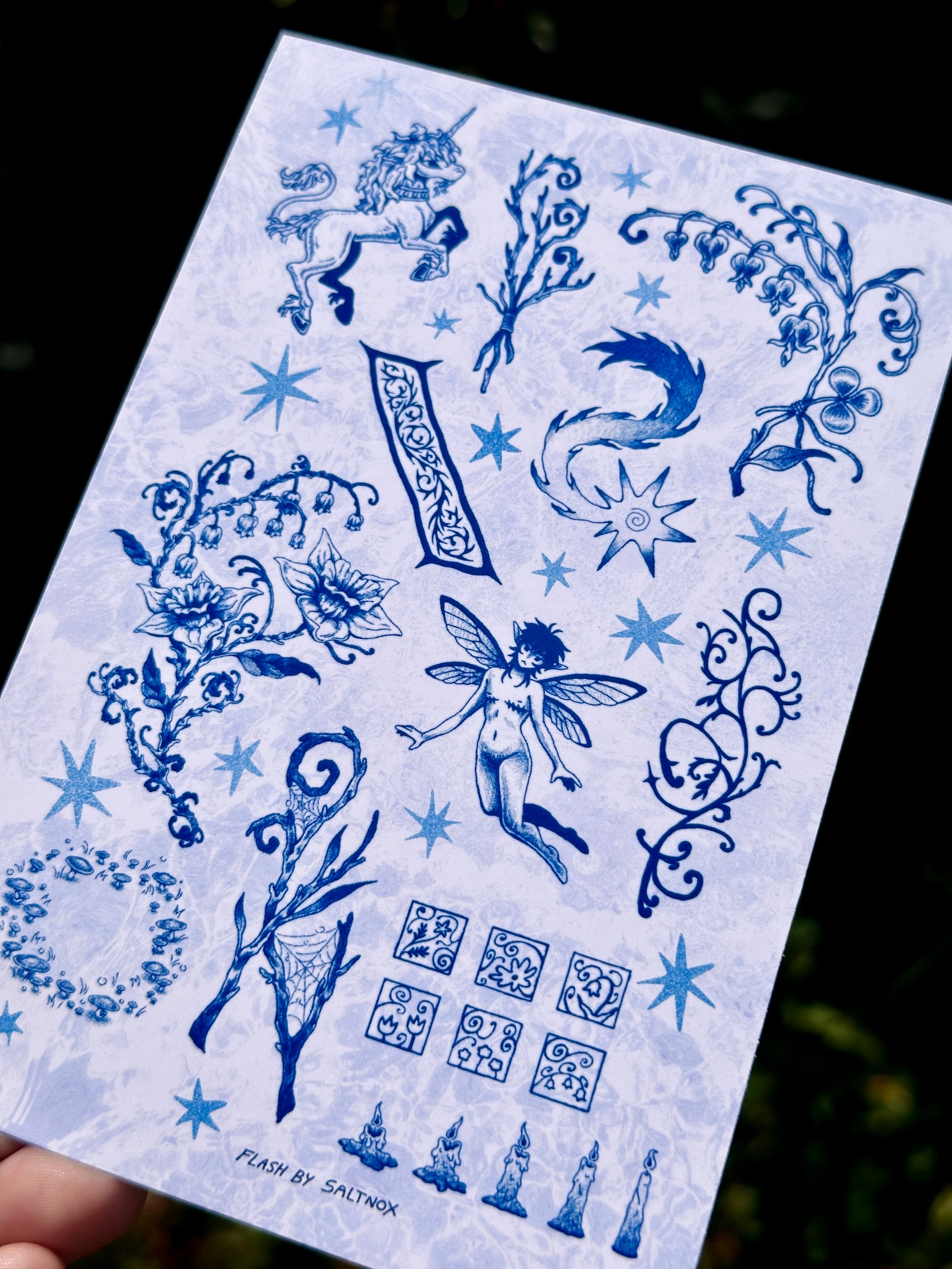 these postcard-sized prints are made in my home studio and designed entirely by me. they are printed on double sided glossy photo paper, and the backside works as a postcard template to mail to a friend/loved one! i recommend using pen on the backside if you intend to mail it :)