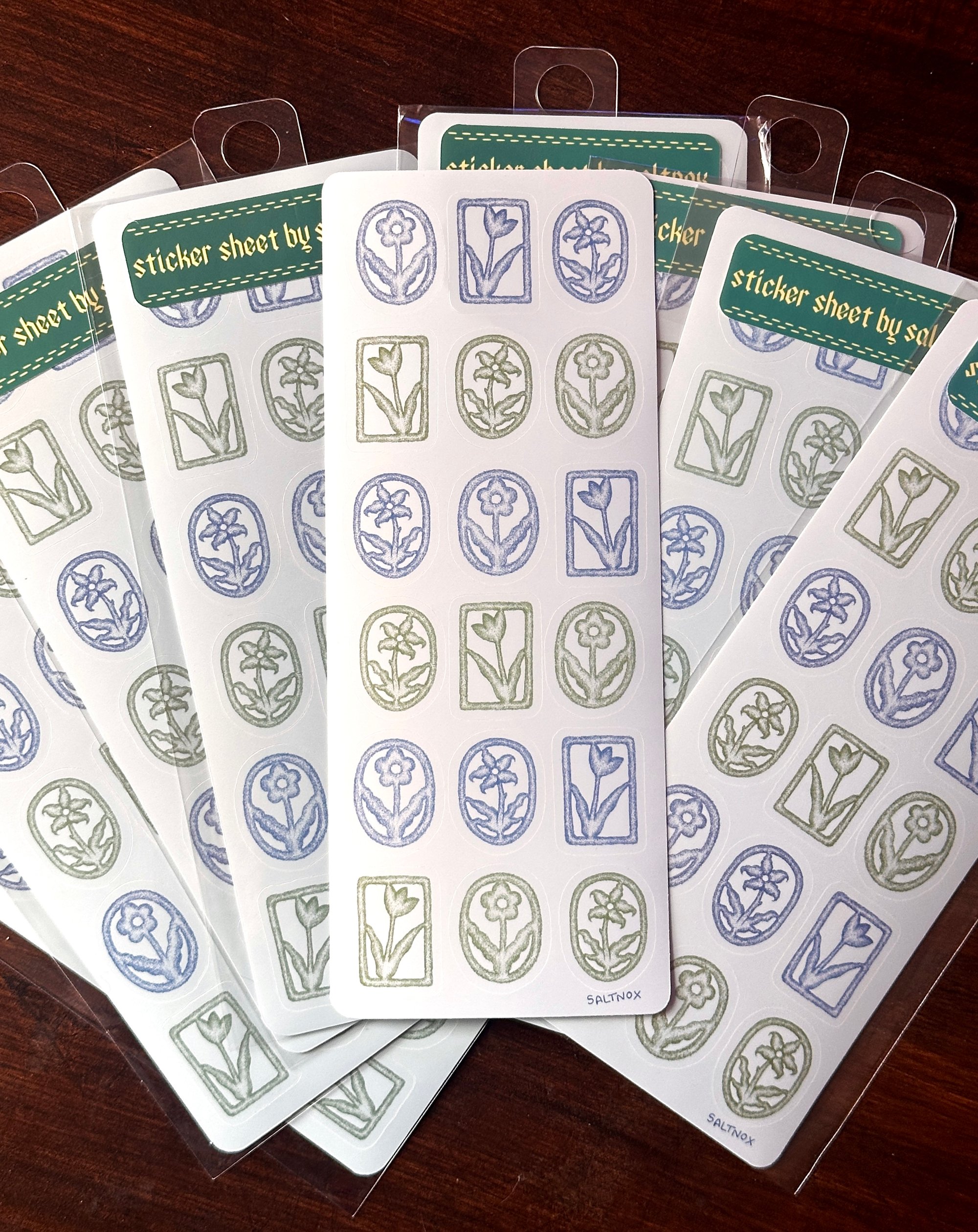 these sticker sheets are homemade and printed on glossy vinyl sticker paper, each sticker sheet is approximately 2.75x7" and are made with lots of love :)