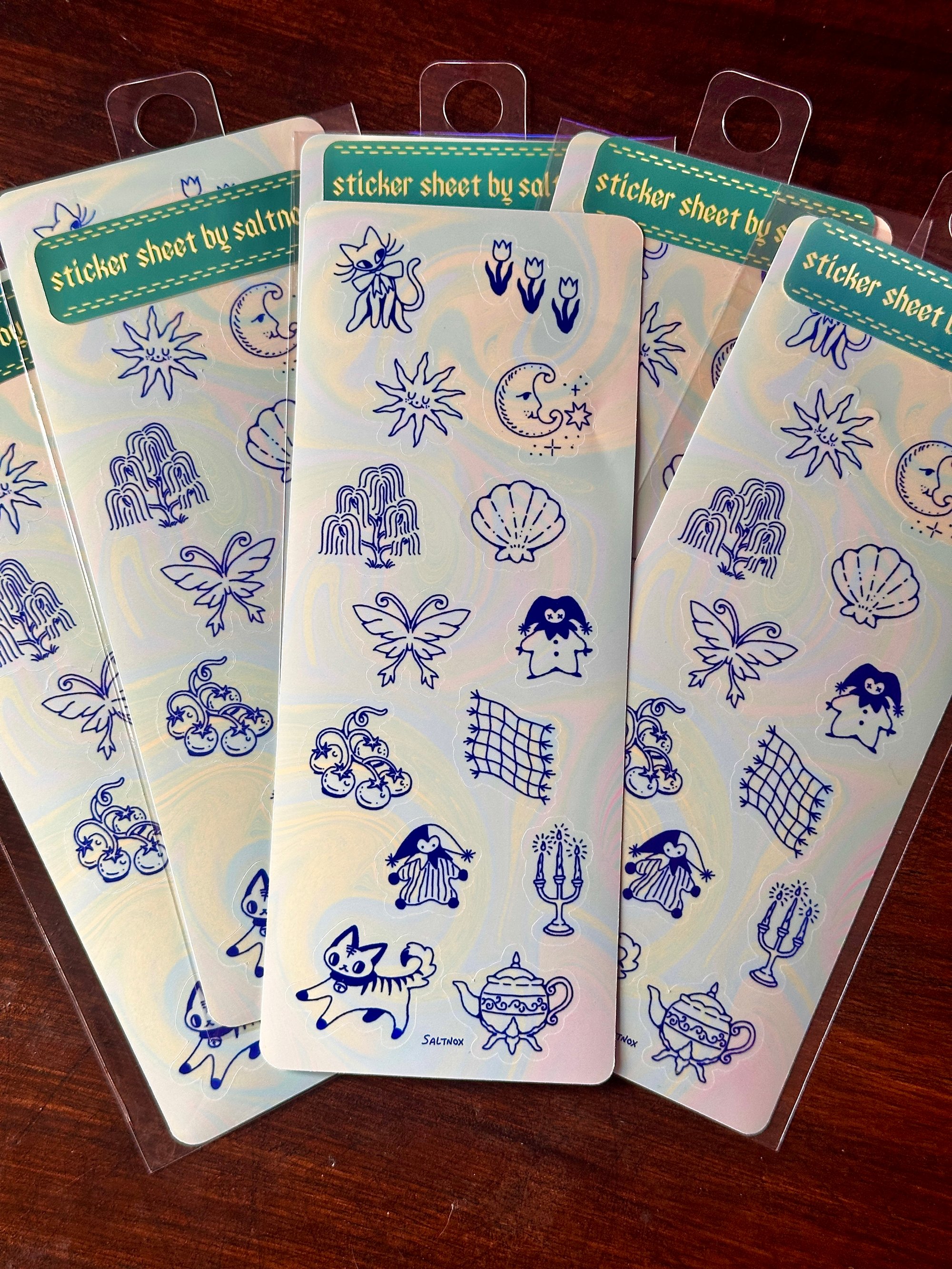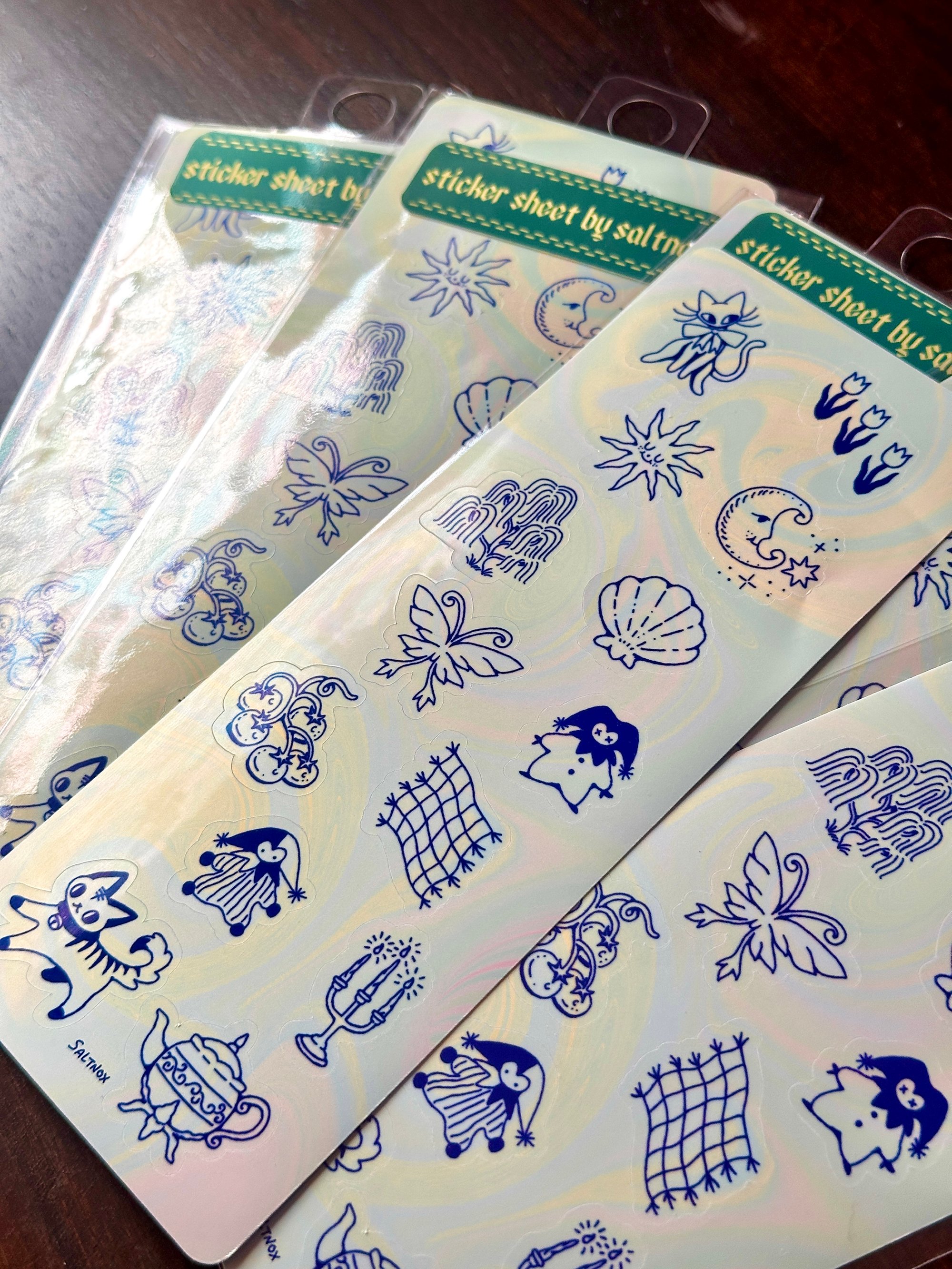 these sticker sheets are homemade and printed on glossy vinyl sticker paper, each sticker sheet is approximately 2.75x7" and are made with lots of love :)