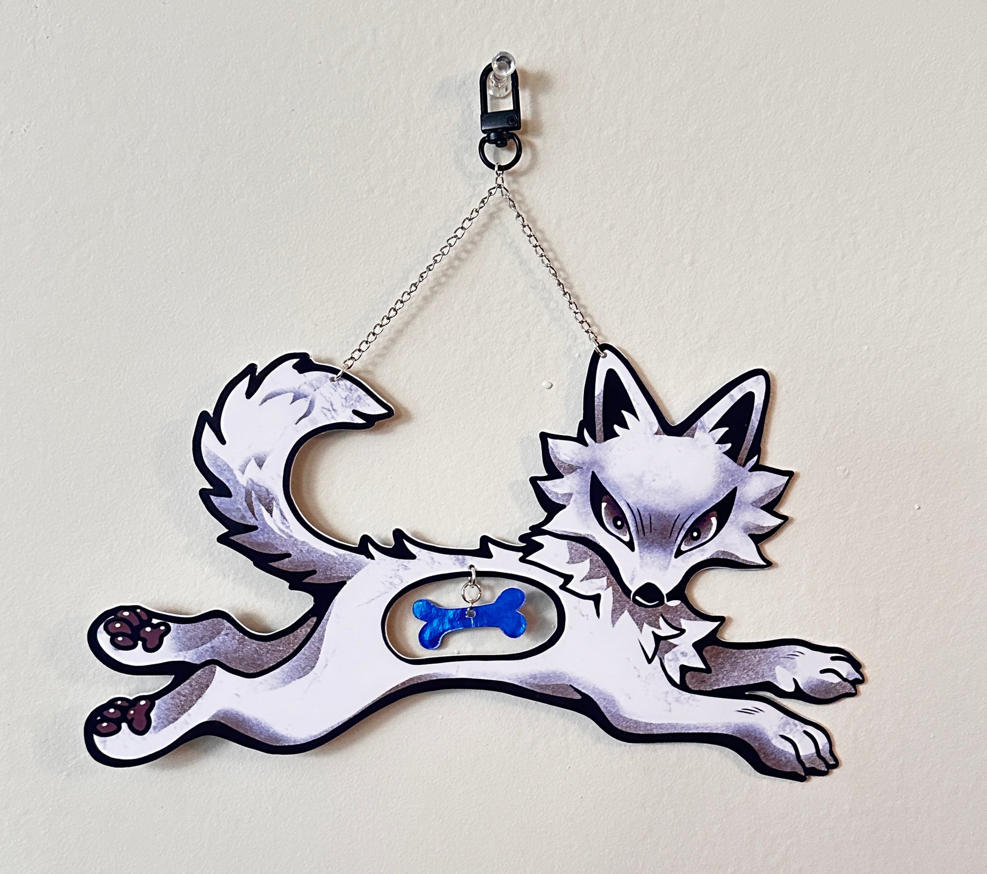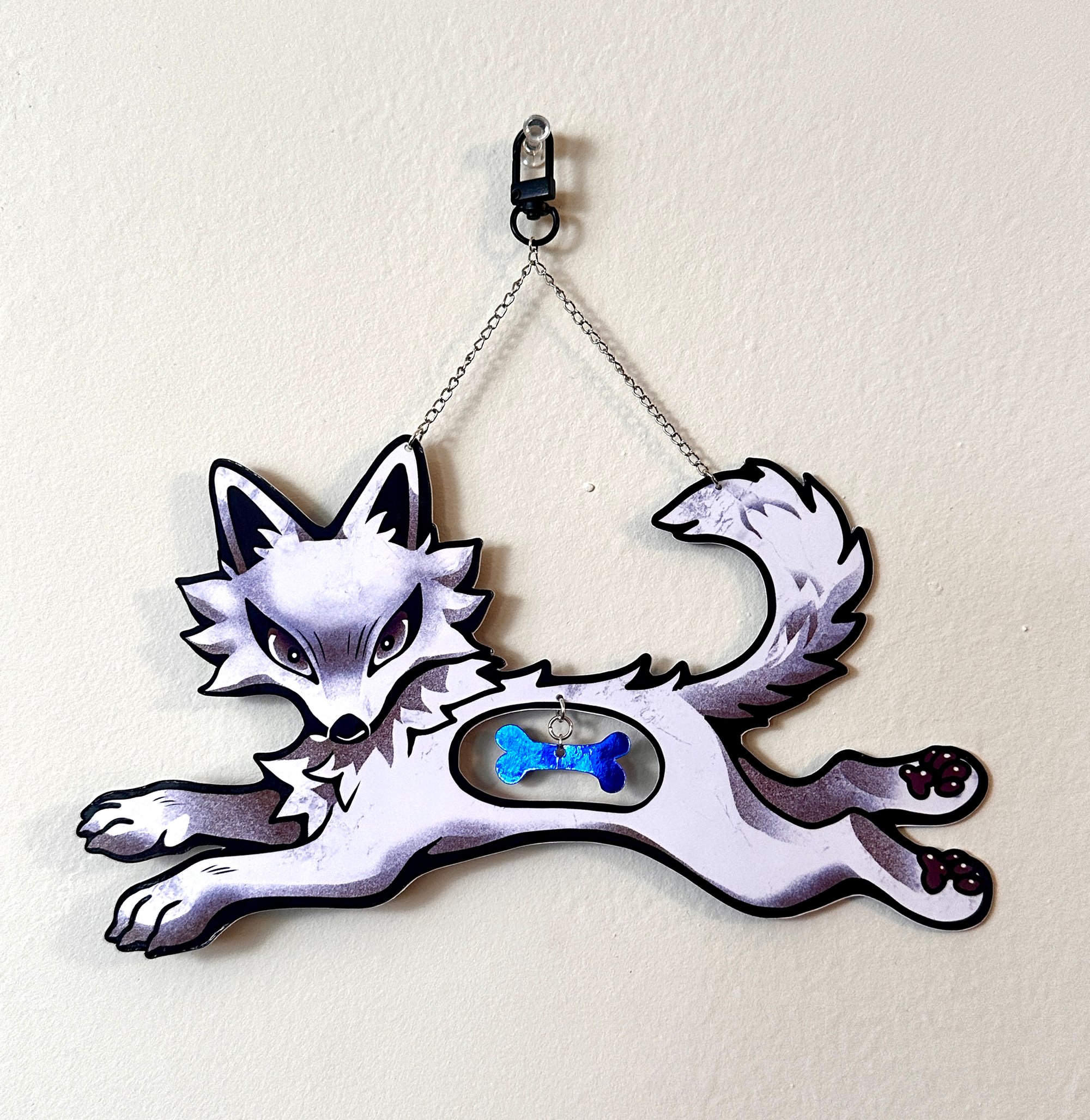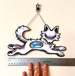 these are hand drawn by me, printed onto thick cardstock, laminated with a thick glossy laminate, cut out, glued together so it's double sided, and assembled together lovingly with my own two paws.